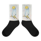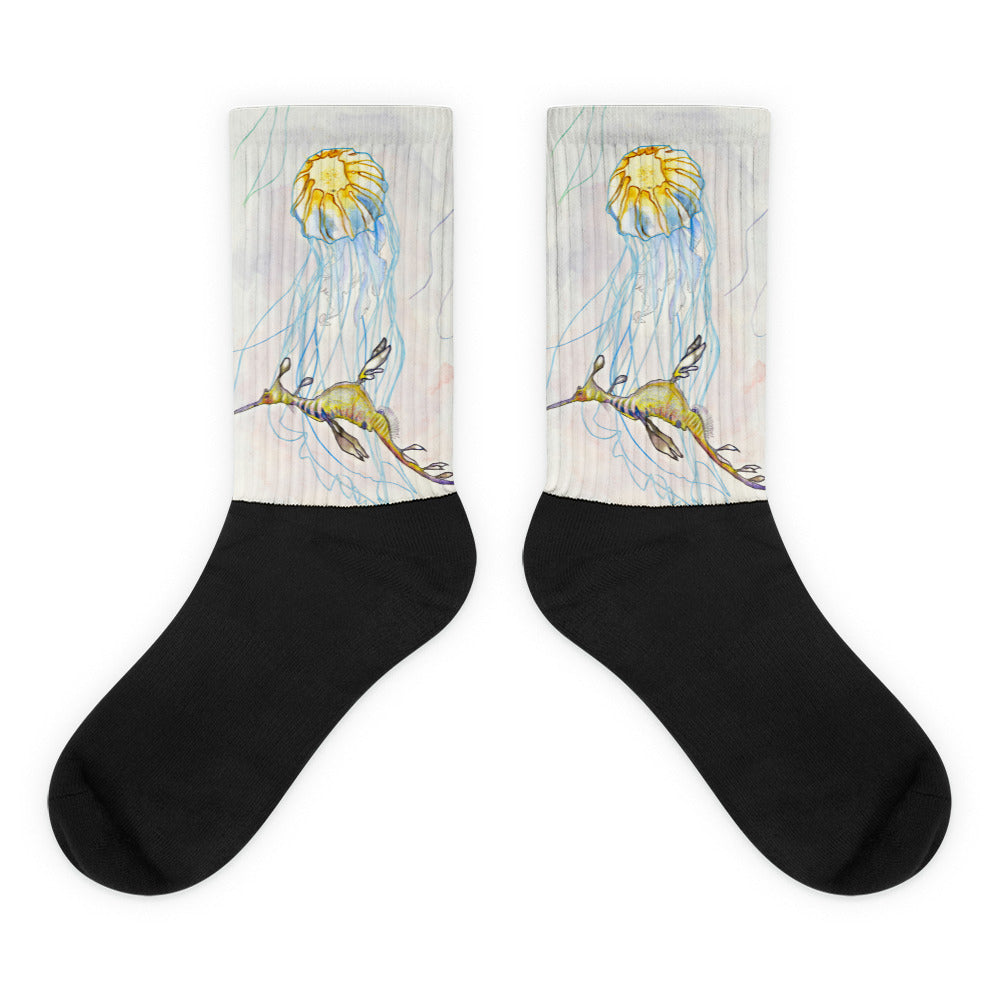 These socks are extra comfortable thanks to their cushioned bottom. The foot is black with artwork printed along the leg with crisp, bold colors that won't fade.