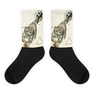 These socks are extra comfortable thanks to their cushioned bottom. The foot is black with artwork printed along the leg with crisp, bold colors that won't fade.