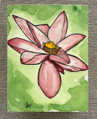 Lotus is drawn in ink and colored with watercolor on cold press watercolor paper.