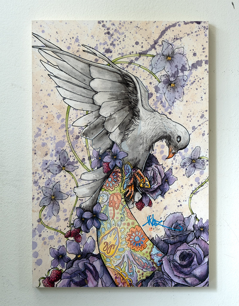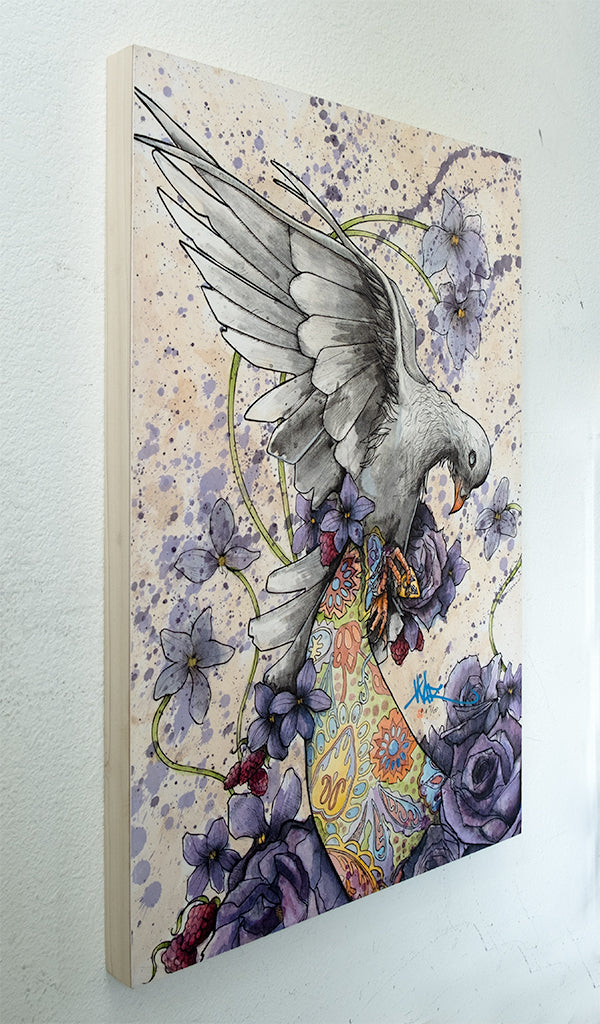 "Purple Reign" dry mounted on cradled wood panel. The reproductions are hand embellished with an acrylic medium for finish and protection and are ready to hang. All mounted reproductions are limited edition, signed and numbered by the artist.