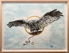 This snowy owl, as supernatural messenger, brings gifts potentially from another realm. These totems, representing meaningful colors from my own loved ones who've crossed over, indicate this owl has moved between worlds and is carrying meaningful messages. Its position above us portrays a watchful guardian. Is the portal a gateway to the other side? Or is this owl a physical being, able to see what's here that we cannot?