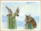Ink and watercolor illustration on cold press watercolor paper with paint marker highlights. Float mounted in a custom cut maple frame set behind museum quality clear acrylic.