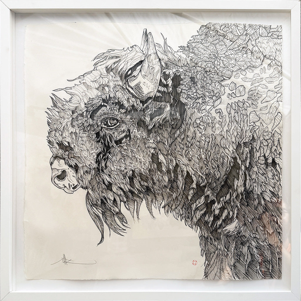 These are variations on my mixed media illustration originals. They're explorations outside of my normal presentation. Cropped compositions, pen only drawings, looser expressions. As of now, they're presented in either square or skinny formats.
