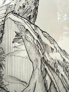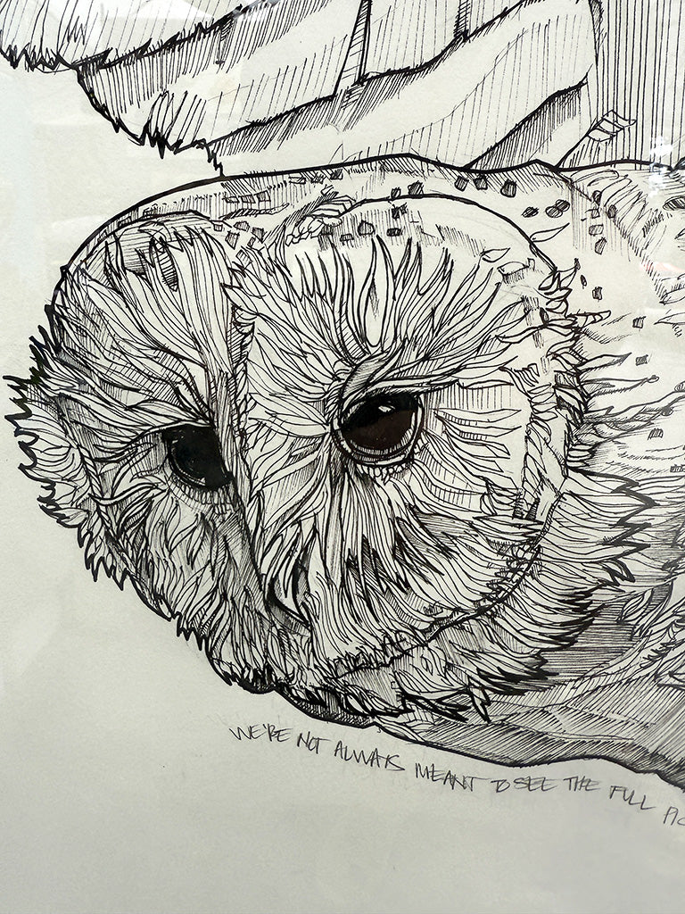 (2025) 10" x 22" Ink illustration on cold press watercolor paper. Float mounted in a custom cut frame set behind museum quality clear acrylic.
