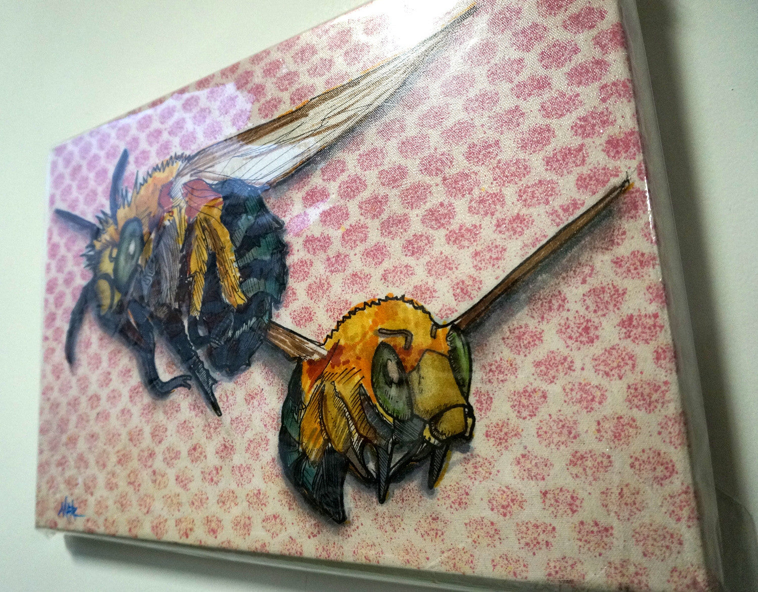 "Products of Their Colony" Canvas Giclèe. Printed with archival inks on matte canvas, glossed with UV protectant coat and stretched over 1.25" thick wood bars. Canvas measures 14"x 20". Ready to hang with picture wire.